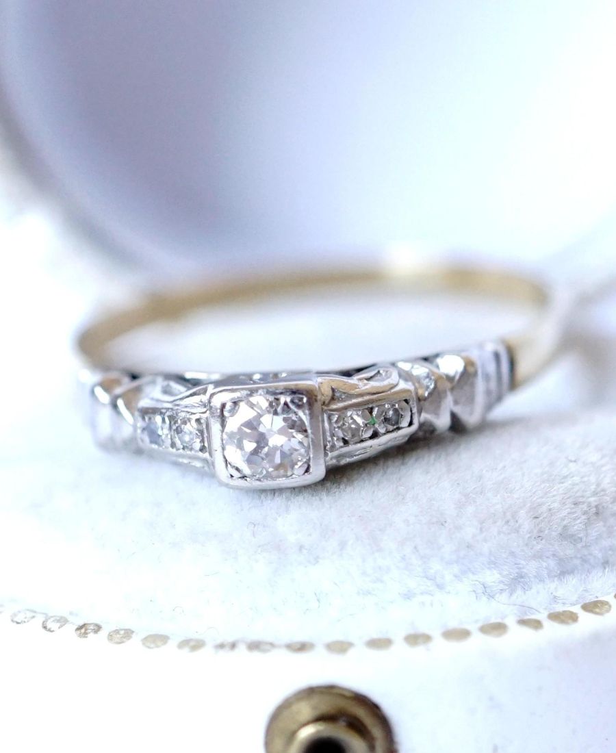Vorgestellt wird ein antiker Ring aus der Zeit des Art-Deco, England um 1930, aus 750 Gelbgold und Platin