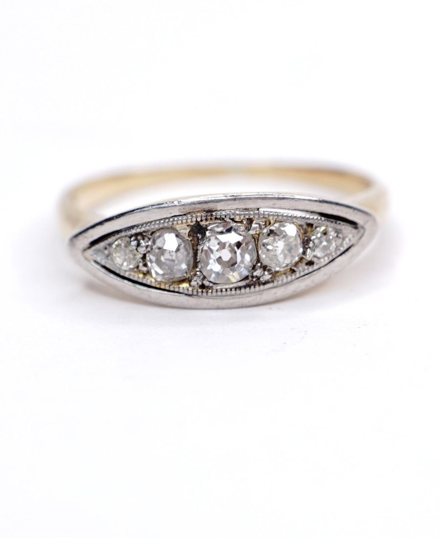 Antiker englischer Art Deco Ring 0.25ct Diamanten 750 Gelbgold + Platin B4234