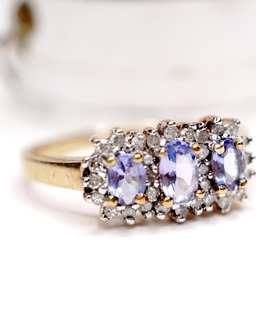 Schöner englischer Ring mit Tansanit und Diamanten in 375/000 Gelbgold B4335