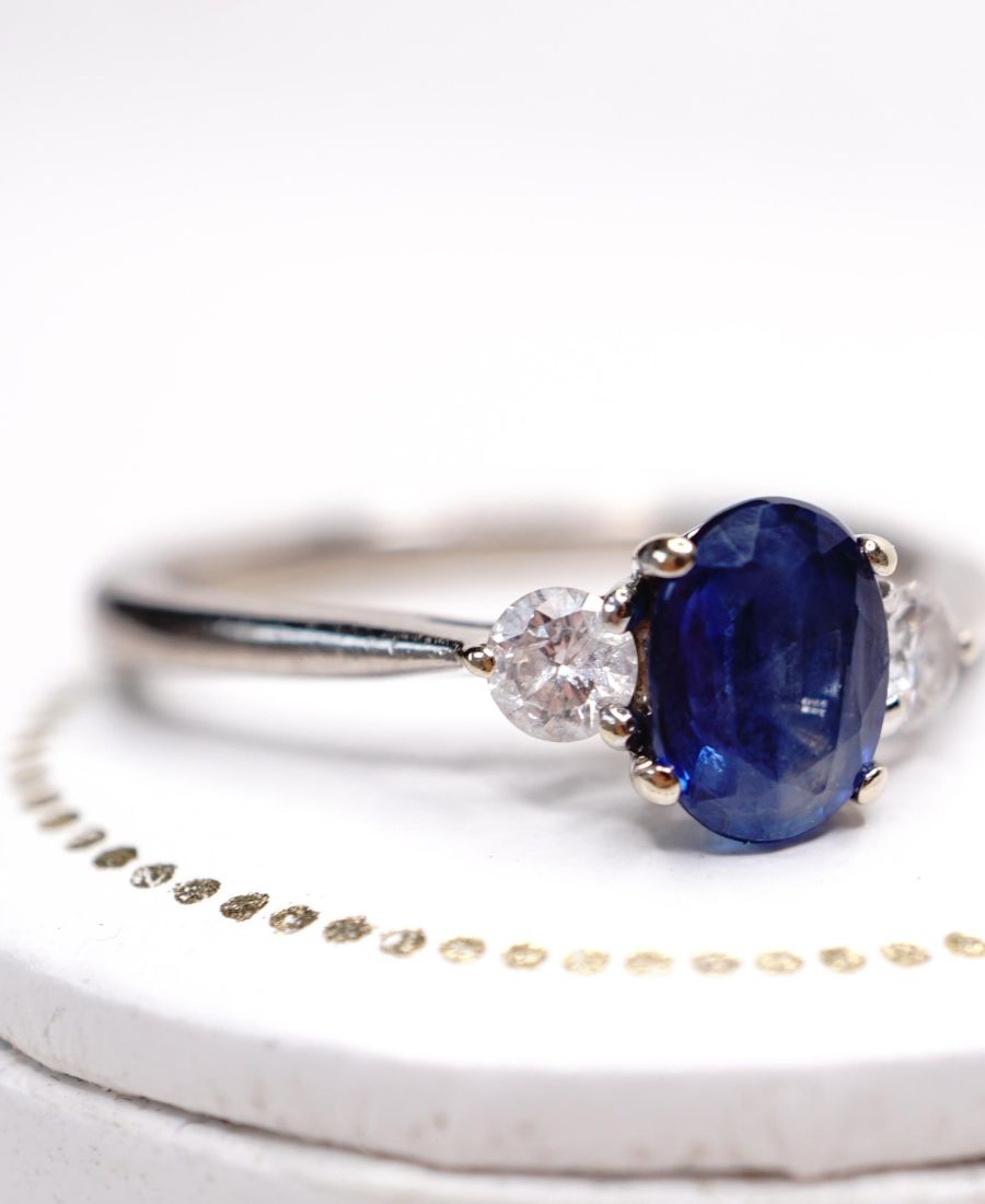 Schöner englischer Ring mit Saphir und 0.20ct Brillanten 750/000 Weisgold B4343