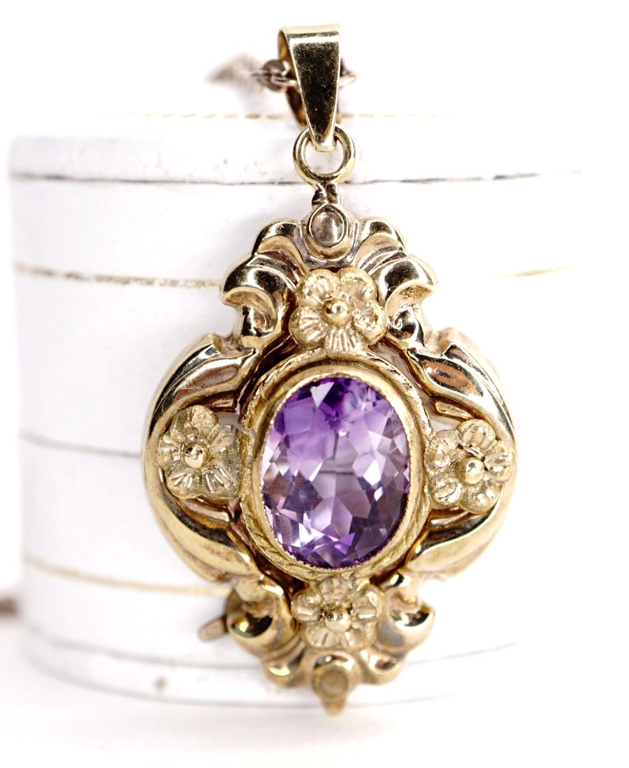 Antiker wunderschöner Biedermeier Anhänger 333/000 Gelbgold mit Amethyst B4380